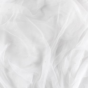 - White Soft silk tulle with crystals